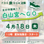 2024年3月29日 / 最終更新日 : 2024年3月29日 Naoki お知らせ 白山宮へGO 2024.04.18 コンにちは🦊 FOXの近藤です! 4月18日10時より、愛知池から白山宮まで約8km(往復)走るイベントを開催します😊 足の守護神として信仰されていている白山宮の足王社✨「痛 […]