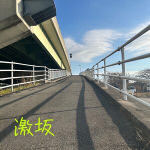 約100mほどの距離を10本。100mのうち、坂は前半の50mだけですが、ここからの50mが意外とキツい✨傾斜がゆるいので、ある程度スピードは維持できますが、呼吸がきついです!