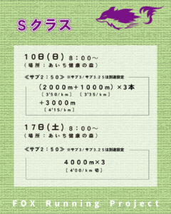 フルマラソン2時間50分/3時間/3時間15分を目標とする方をターゲットにしたクラスです!