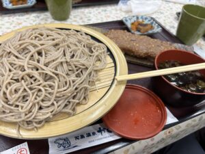 レース後は、近くにある温泉「かじかの湯」で疲れを癒し♨️そばと五平餅を食べて帰宅。